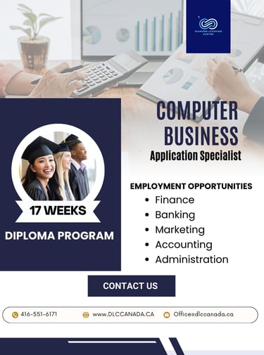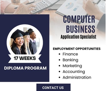 Master the digital tools that power modern offices with our Computer Business Applications Specialist Diploma Program, delivered 100% online for maximum flexibility. This practical program is designed to equip you with in-demand skills in office productivity software, data management, and administrative technology—ideal for anyone looking to thrive in today’s computer-driven work environments.