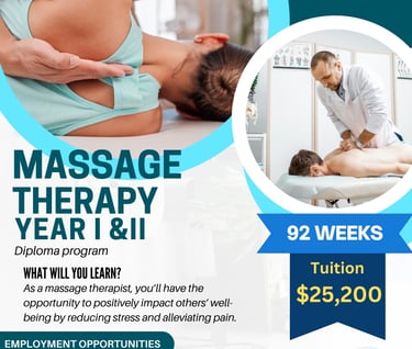 Transform your passion for healing and wellness into a rewarding career with our Massage Therapy Diploma Program, designed to provide comprehensive training in anatomy, physiology, therapeutic techniques, and client care. Delivered through a combination of classroom instruction, hands-on practice, and clinical experience, this program prepares you to work confidently as a registered massage therapist in clinics, spas, wellness centers, or private practice.