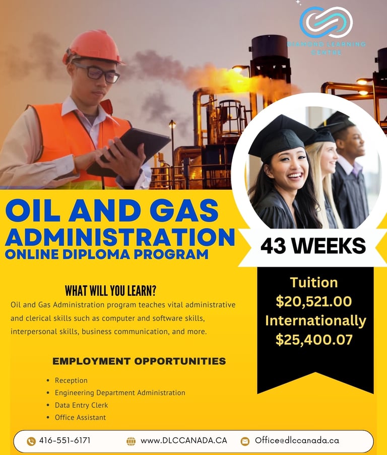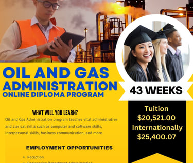 Launch your career in the dynamic oil and gas industry with the Oil and Gas Administration Diploma Program, delivered entirely online for your convenience. This specialized program provides you with the essential administrative, communication, and operational skills needed to support oil and gas companies in office management, project coordination, and regulatory compliance.