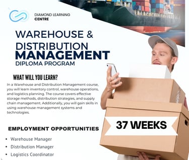 Master the operational backbone of the supply chain with the Warehouse and Distribution Management Diploma Program, designed to prepare you for supervisory and specialist roles in warehousing, inventory control, and distribution logistics. This program focuses on practical skills and strategic approaches for managing warehouse operations, improving efficiency, and ensuring timely delivery of goods across various industries.